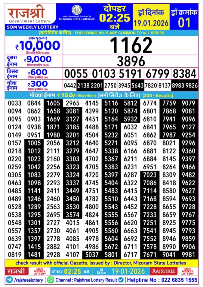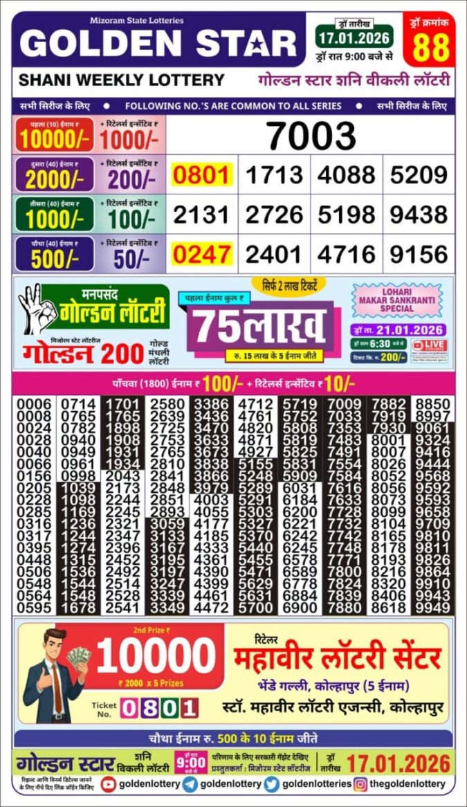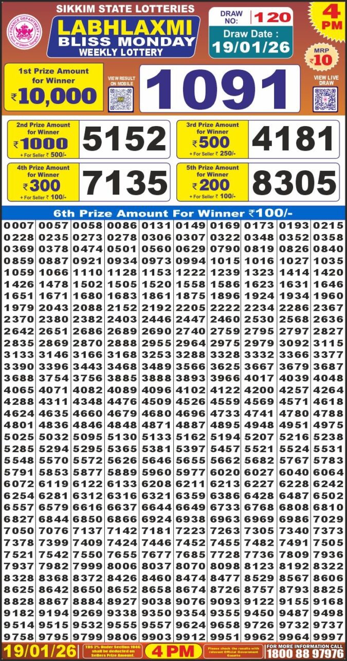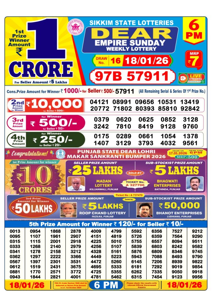 Punjab State Lohri Bumper Lottery Result 17/01/2026 The Punjab State Lohri Bumper Lottery Result 2026 is declared…