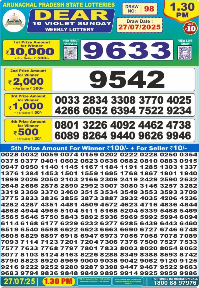 Dear Violet 1.30PM Sunday Weekly Lottery Result 27/07/2025