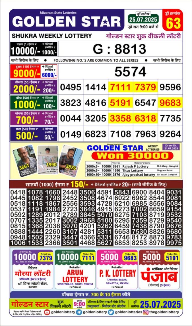 Golden Star Ravi 9PM Weekly Lottery Result 27/07/2025