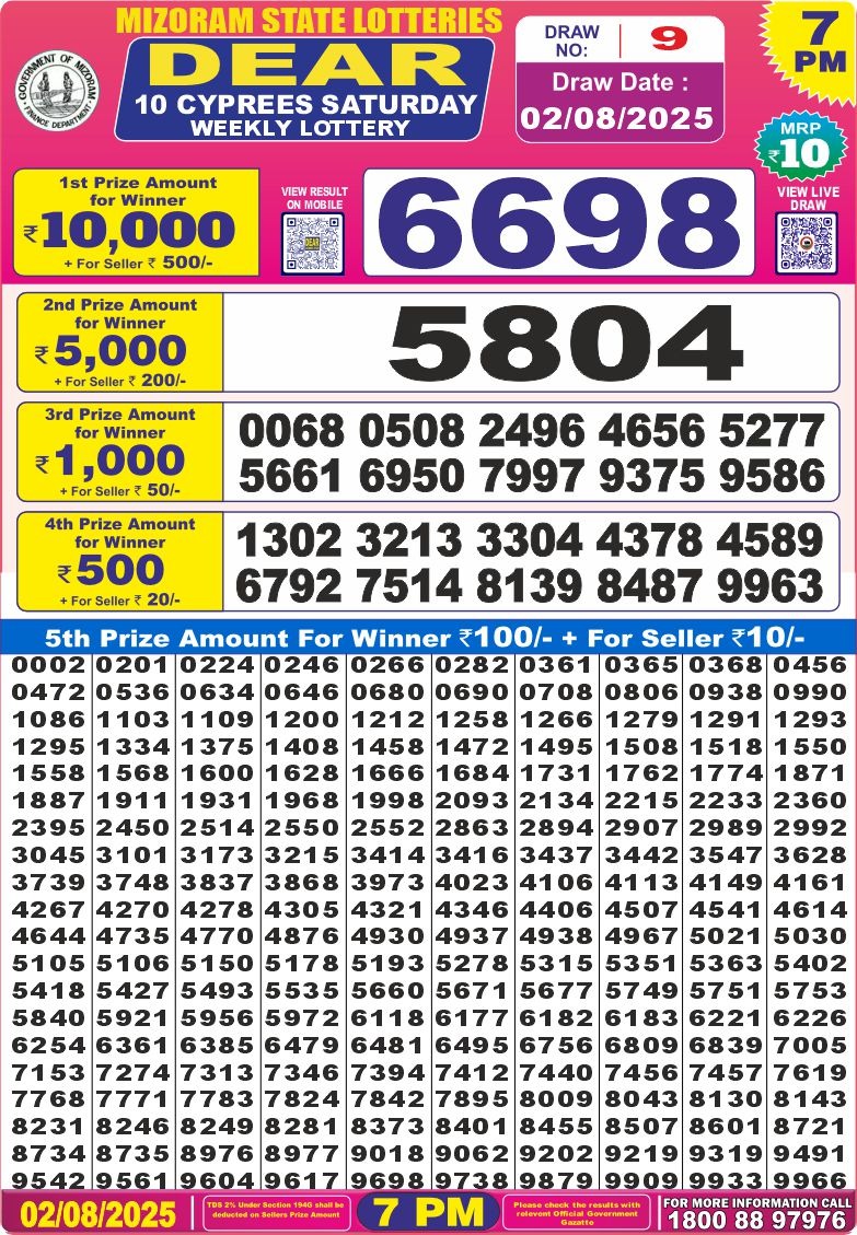 Dear 10 Cyprees 7pm Saturday Weekly Lottery Result 02/08/2025 August 2, 2025 Leave a Comment on Dear 10 Cyprees 7pm Saturday Weekly Lottery Result 02/08/2025 Related Results Dear 10 Acacia 7pm Sunday Weekly Lottery Result 21/09/2025 Dear 10 Cyprees 7pm Saturday Weekly Lottery Result 20/09/2025 Dear 10 Conifer Friday Weekly Lottery Result 7pm 19/09/2025 Dear 10 Oak 7pm Thursday Weekly Lottery Result 18/09/2025