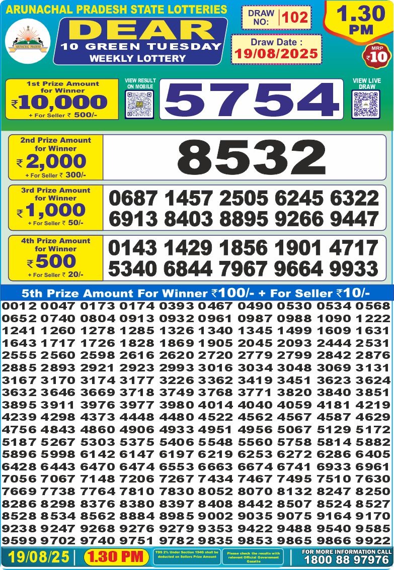 Dear 10 Green 1.30pm Tuesday Weekly Lottery Result 19/08/2025 August 19, 2025 Leave a Comment on Dear 10 Green 1.30pm Tuesday Weekly Lottery Result 19/08/2025 Related Results Dear Violet 1.30pm Sunday Weekly Lottery Result 24/08/2025 Dear 10 Yellow Saturday Weekly Lottery Result 1.30pm 23/08/2025 Dear 10 Red Friday Weekly Lottery Result 1.30pm 22/08/2025 Dear 10 Pink 1.30pm Thursday Weekly Lottery Result 21/08/2025