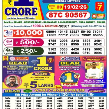 February 20, 2026  Leave a Comment on Dear Crown Friday Weekly Lottery Result 6pm 20/02/2026