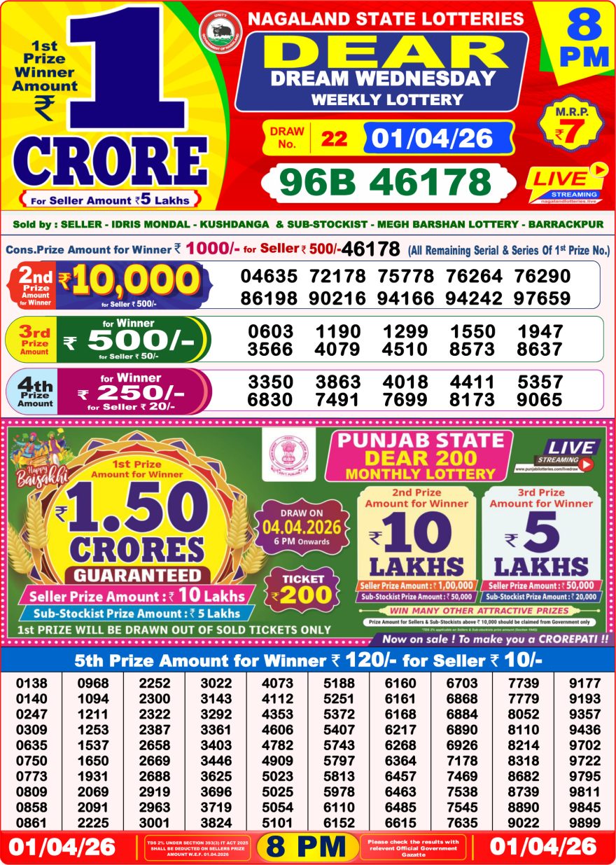 Dear Dream 8pm Wednesday Weekly Lottery Result 01/04/2026 April 1, 2026 Leave a Comment on Dear Dream 8pm Wednesday Weekly Lottery Result 01/04/2026 Related Results Dear Destiny 8pm Tuesday Weekly Lottery Result 21/04/2026 Dear Clover Monday Weekly Lottery Result 8pm 20/04/2026 Dear Magic Sunday Weekly Lottery Result 8pm 19/04/2026 Dear Lucky 8pm Saturday Weekly Lottery Result 18/04/2026