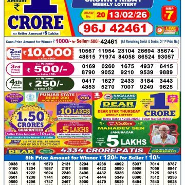 Dear Elite 6pm Saturday Weekly Lottery Result 14/02/2026 February 14, 2026 Leave a Comment on Dear Elite 6pm Saturday Weekly Lottery Result 14/02/2026 Related Results Dear Crown Friday Weekly Lottery Result 6pm 13/02/2026 Dear Supreme Thursday Weekly Lottery Result 6pm 12/02/2026 Dear Regal 6pm Wednessday Weekly Lottery Result 11/02/2026 Dear Prestige 6pm Tuesday Weekly Lottery Result 10/02/2026