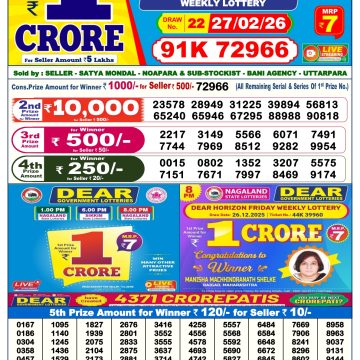 Dear Elite 6pm Saturday Weekly Lottery Result 28/02/2026 February 28, 2026 Leave a Comment on Dear Elite 6pm Saturday Weekly Lottery Result 28/02/2026 Related Results Dear Crown Friday Weekly Lottery Result 6pm 27/02/2026 Dear Supreme Thursday Weekly Lottery Result 6pm 26/02/2026 Dear Regal 6pm Wednesday Weekly Lottery Result 25/02/2026 Dear Prestige 6pm Tuesday Weekly Lottery Result 24/02/2026