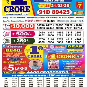 Dear Empire 6pm Sunday Weekly Lottery Result 22/03/2026 March 22, 2026 Leave a Comment on Dear Empire 6pm Sunday Weekly Lottery Result 22/03/2026 Related Results Dear Legend 6pm Monday Weekly Lottery Result 23/03/2026 Dear Elite 6pm Saturday Weekly Lottery Result 21/03/2026 Dear Crown Friday Weekly Lottery Result 6pm 20/03/2026 Dear Supreme Thursday Weekly Lottery Result 6pm 19/03/2026