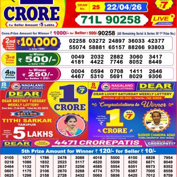 Dear Fame Thursday Weekly Lottery Result 8pm 23/04/2026 April 23, 2026 Leave a Comment on Dear Fame Thursday Weekly Lottery Result 8pm 23/04/2026 Related Results Rajshree Wednesday 8pm Weekly Lottery Result 22/04/2026 Dear Dream 8pm Wednesday Weekly Lottery Result 22/04/2026 Dear Destiny 8pm Tuesday Weekly Lottery Result 21/04/2026 Dear Clover Monday Weekly Lottery Result 8pm 20/04/2026