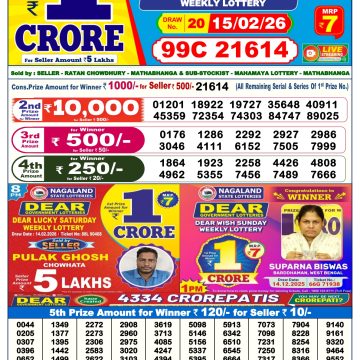 Dear Legend 6pm Monday Weekly Lottery Result 16/02/2026 February 16, 2026 Leave a Comment on Dear Legend 6pm Monday Weekly Lottery Result 16/02/2026 Related Results Dear Empire 6pm Sunday Weekly Lottery Result 15/02/2026 Dear Elite 6pm Saturday Weekly Lottery Result 14/02/2026 Dear Crown Friday Weekly Lottery Result 6pm 13/02/2026 Dear Supreme Thursday Weekly Lottery Result 6pm 12/02/2026