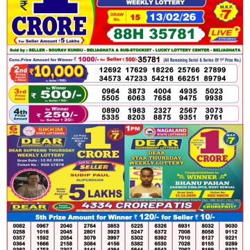 Dear Lucky 8pm Saturday Weekly Lottery Result 14/02/2026 February 14, 2026 Leave a Comment on Dear Lucky 8pm Saturday Weekly Lottery Result 14/02/2026 Related Results Dear Horizon 8pm Friday Weekly Lottery Result 13/02/2026 Dear Fame Thursday Weekly Lottery Result 8pm 12/02/2026 Rajshree Wednessday 8pm Weekly Lottery Result 11/02/2026 Dear Dream 8pm Wednessday Weekly Lottery Result 11/02/2026