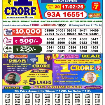 Dear Regal 6pm Wednesday Weekly Lottery Result 18/02/2026 February 18, 2026 Leave a Comment on Dear Regal 6pm Wednesday Weekly Lottery Result 18/02/2026 Related Results Dear Prestige 6pm Tuesday Weekly Lottery Result 17/02/2026 Dear Legend 6pm Monday Weekly Lottery Result 16/02/2026 Dear Empire 6pm Sunday Weekly Lottery Result 15/02/2026 Dear Elite 6pm Saturday Weekly Lottery Result 14/02/2026