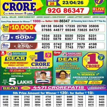 Dear Rise Monday Weekly Lottery Result 1pm 09/03/2026 March 9, 2026 Leave a Comment on Dear Rise Monday Weekly Lottery Result 1pm 09/03/2026 Related Results Dear Star 1pm Thursday Weekly Lottery Result 23/04/2026 Rajshree Budh 2.25pm Weekly Lottery Result 22/04/2026 Dear Spark 1pm Wednesday Weekly Lottery Result 22/04/2026 Dear Shine 1pm Tuesday Weekly Lottery Result 21/04/2026