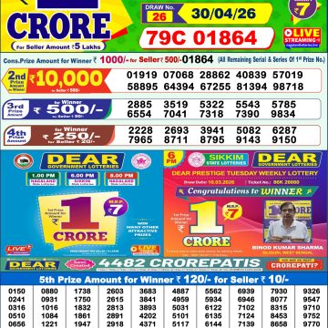 Dear Rise Monday Weekly Lottery Result 1pm 16/03/2026 March 16, 2026 Leave a Comment on Dear Rise Monday Weekly Lottery Result 1pm 16/03/2026 Related Results Dear Vision 1pm Saturday Weekly Lottery Result 11/04/2026 Dear Victory Friday Weekly Lottery Result 1pm 10/04/2026 Dear Star 1pm Thursday Weekly Lottery Result 09/04/2026 Rajshree Budh 2.25pm Weekly Lottery Result 08/04/2026