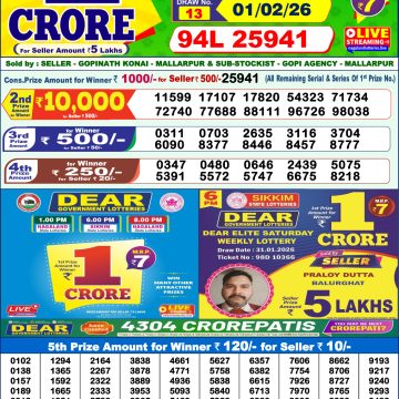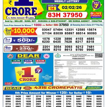Dear Shine 1pm Tuesday Weekly Lottery Result 03/02/2026 February 3, 2026 Leave a Comment on Dear Shine 1pm Tuesday Weekly Lottery Result 03/02/2026 Related Results Dear Rise Monday Weekly Lottery Result 1pm 02/02/2026 Dear Wish 1pm Sunday Weekly Lottery Result 01/02/2026 Dear Vision 1pm Saturday Weekly Lottery Result 31/01/2026 Dear Victory Friday Weekly Lottery Result 1pm 30/01/2026