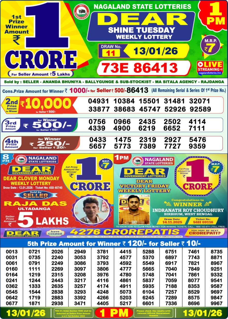 January 13, 2026  Leave a Comment on Dear Shine 1pm Tuesday Weekly Lottery Result 13/01/2026