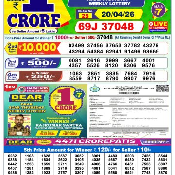 Dear Shine 1pm Tuesday Weekly Lottery Result 21/04/2026 April 21, 2026 Leave a Comment on Dear Shine 1pm Tuesday Weekly Lottery Result 21/04/2026 Related Results Dear Rise Monday Weekly Lottery Result 1pm 20/04/2026 Dear Wish 1pm Sunday Weekly Lottery Result 19/04/2026 Dear Vision 1pm Saturday Weekly Lottery Result 18/04/2026 Dear Victory Friday Weekly Lottery Result 1pm 17/04/2026