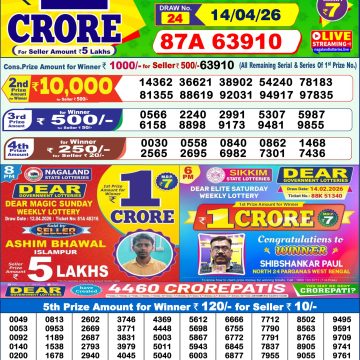 2026-04-15 Rajshree Night Weekly Lottery Result 9pm 15/04/2026  2026-04-15 Rajshree 50 Budh 7.30pm Weekly Lottery Result 15/04/2026  2026-04-15 Rajshree Wednesday 8pm Weekly Lottery Result 15/04/2026  2026-04-15 Dear Dream 8pm Wednesday Weekly Lottery Result 15/04/2026  2026-04-15 Dear Regal 6pm Wednesday Weekly Lottery Result 15/04/2026  2026-04-15 Rajshree 10 Evening Budh 5.40pm Weekly Lottery Result 15/04/2026  2026-04-15 Punjab State Dear 50 5pm Wednesday Weekly Lottery Result 15/04/2026  2026-04-15 Labh Laxmi Delight 4pm Wednesday Weekly Lottery Result 15/04/2026  2026-04-15 Rajshree lily 4pm Weekly Lottery Result 15/04/2026  2026-04-15 Rajshree Budh 2.25pm Weekly Lottery Result 15/04/2026  2026-04-15 Dear Spark 1pm Wednesday Weekly Lottery Result 15/04/2026  2026-04-14 Punjab State 100 Monthly Lottery Result 14/04/2026  2026-04-14 Rajshree 500 Monthly Lottery Result 14/04/2026  2026-04-14 Kerala Lottery Result Sthree Sakthi SS-515 Today 14/04/2026  2026-04-14 Rajshree Night  Weekly Lottery Result 9pm 14/04/2026  2026-04-14 Rajshree 50 Mangal 7.30pm Weekly Lottery Result 14/04/2026