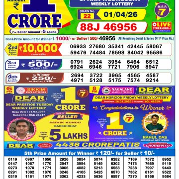 Dear Star 1pm Thursday Weekly Lottery Result 02/04/2026 April 2, 2026 Leave a Comment on Dear Star 1pm Thursday Weekly Lottery Result 02/04/2026 Related Results Rajshree Budh 2.25pm Weekly Lottery Result 01/04/2026 Dear Spark 1pm Wednesday Weekly Lottery Result 01/04/2026 Dear Shine 1pm Tuesday Weekly Lottery Result 31/03/2026 Dear Rise Monday Weekly Lottery Result 1pm 30/03/2026
