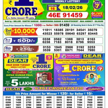 Dear Star 1pm Thursday Weekly Lottery Result 19/02/2026 February 19, 2026 Leave a Comment on Dear Star 1pm Thursday Weekly Lottery Result 19/02/2026 Related Results Rajshree Budh 2.25pm Weekly Lottery Result 18/02/2026 Dear Spark 1pm Wednesday Weekly Lottery Result 18/02/2026 Dear Shine 1pm Tuesday Weekly Lottery Result 17/02/2026 Dear Rise Monday Weekly Lottery Result 1pm 16/02/2026