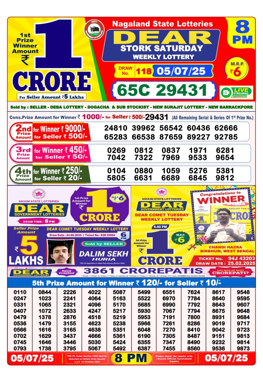 Dear stork 8pm saturday weekly lottery result 05/07/2025 July 5, 2025 Leave a Comment on Dear stork 8pm saturday weekly lottery result 05/07/2025 Related Results Dear Lucky 8pm Saturday Weekly Lottery Result 13/12/2025 Dear Horizon 8pm Friday Weekly Lottery Result 12/12/2025 Dear Fame Thursday Weekly Lottery Result 8pm 11/12/2025 Dear Dream Wednesday Weekly Lottery Result 8pm 10/12/2025