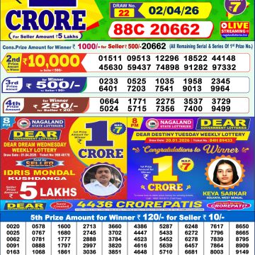 Dear Victory Friday Weekly Lottery Result 1pm 03/04/2026 April 3, 2026 Leave a Comment on Dear Victory Friday Weekly Lottery Result 1pm 03/04/2026 Related Results Dear Star 1pm Thursday Weekly Lottery Result 02/04/2026 Rajshree Budh 2.25pm Weekly Lottery Result 01/04/2026 Dear Spark 1pm Wednesday Weekly Lottery Result 01/04/2026 Dear Shine 1pm Tuesday Weekly Lottery Result 31/03/2026