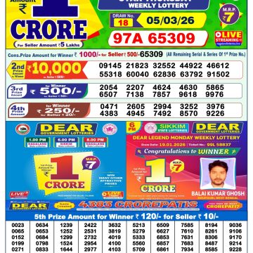 Dear Victory Friday Weekly Lottery Result 1pm 06/03/2026 March 6, 2026 Leave a Comment on Dear Victory Friday Weekly Lottery Result 1pm 06/03/2026 Related Results Dear Star 1pm Thursday Weekly Lottery Result 05/03/2026 Rajshree Budh 2.25pm Weekly Lottery Result 04/03/2026 Dear Spark 1pm Wednesday Weekly Lottery Result 04/03/2026 Dear Shine 1pm Tuesday Weekly Lottery Result 03/03/2026