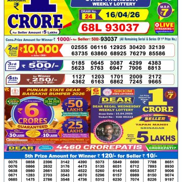 Dear Victory Friday Weekly Lottery Result 1pm 17/04/2026 April 17, 2026 Leave a Comment on Dear Victory Friday Weekly Lottery Result 1pm 17/04/2026 Related Results Dear Star 1pm Thursday Weekly Lottery Result 16/04/2026 Rajshree Budh 2.25pm Weekly Lottery Result 15/04/2026 Dear Spark 1pm Wednesday Weekly Lottery Result 15/04/2026 Dear Shine 1pm Tuesday Weekly Lottery Result 14/04/2026