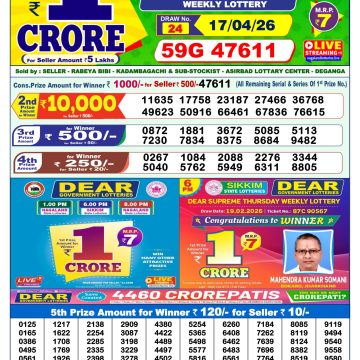 Dear Vision 1pm Saturday Weekly Lottery Result 18/04/2026 April 18, 2026 Leave a Comment on Dear Vision 1pm Saturday Weekly Lottery Result 18/04/2026 Related Results Dear Victory Friday Weekly Lottery Result 1pm 17/04/2026 Dear Star 1pm Thursday Weekly Lottery Result 16/04/2026 Rajshree Budh 2.25pm Weekly Lottery Result 15/04/2026 Dear Spark 1pm Wednesday Weekly Lottery Result 15/04/2026