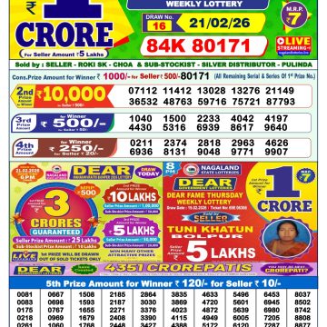 Dear Wish 1pm Sunday Weekly Lottery Result 22/02/2026 February 22, 2026 Leave a Comment on Dear Wish 1pm Sunday Weekly Lottery Result 22/02/2026 Related Results Dear Vision 1pm Saturday Weekly Lottery Result 21/02/2026 Dear Victory Friday Weekly Lottery Result 1pm 20/02/2026 Dear Star 1pm Thursday Weekly Lottery Result 19/02/2026 Rajshree Budh 2.25pm Weekly Lottery Result 18/02/2026