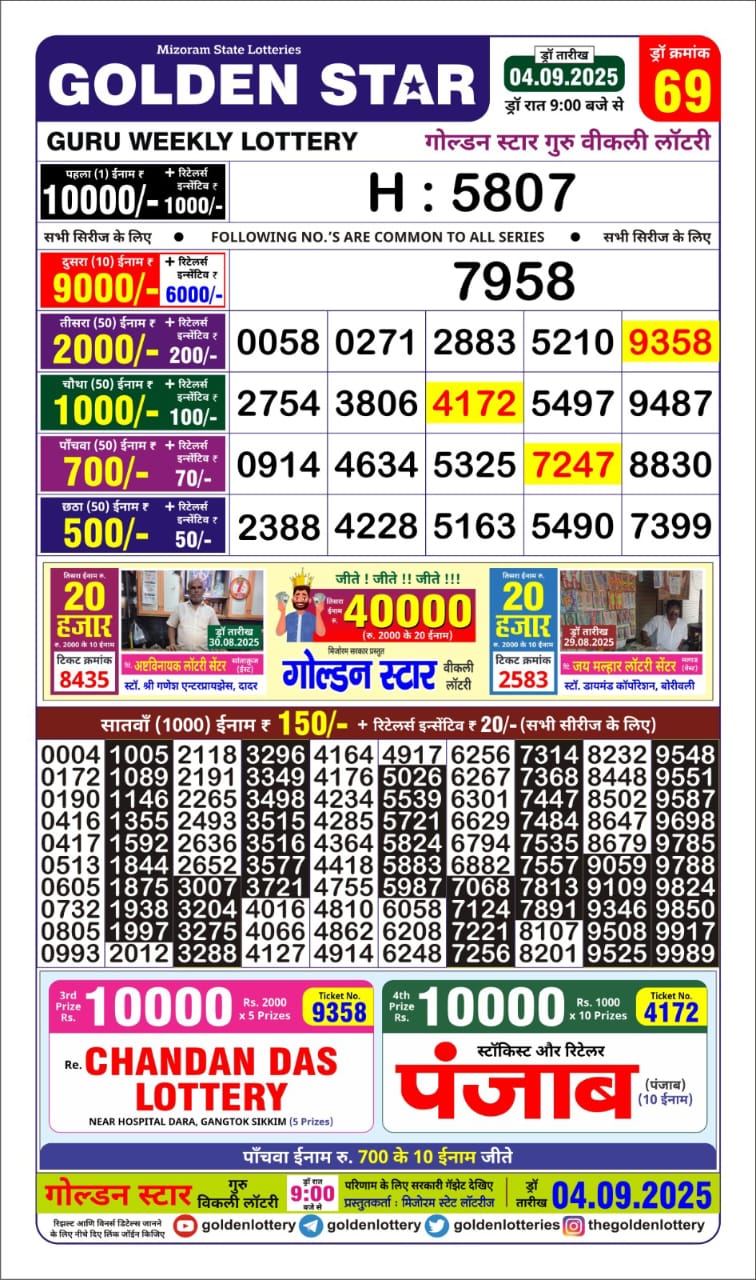 Golden Guru 9pm Weekly Lottery Result 04/09/2025 September 4, 2025 Leave a Comment on Golden Guru 9pm Weekly Lottery Result 04/09/2025 Related Results Golden Star Shani 9pm Weekly Lottery Result 06/12/2025 Golden Guru 9pm Weekly Lottery Result 04/12/2025 Golden 100 Monthly Lottery Result 03/12/2025 Golden Star 9 PM Weekly Lottery Result 02/12/2025
