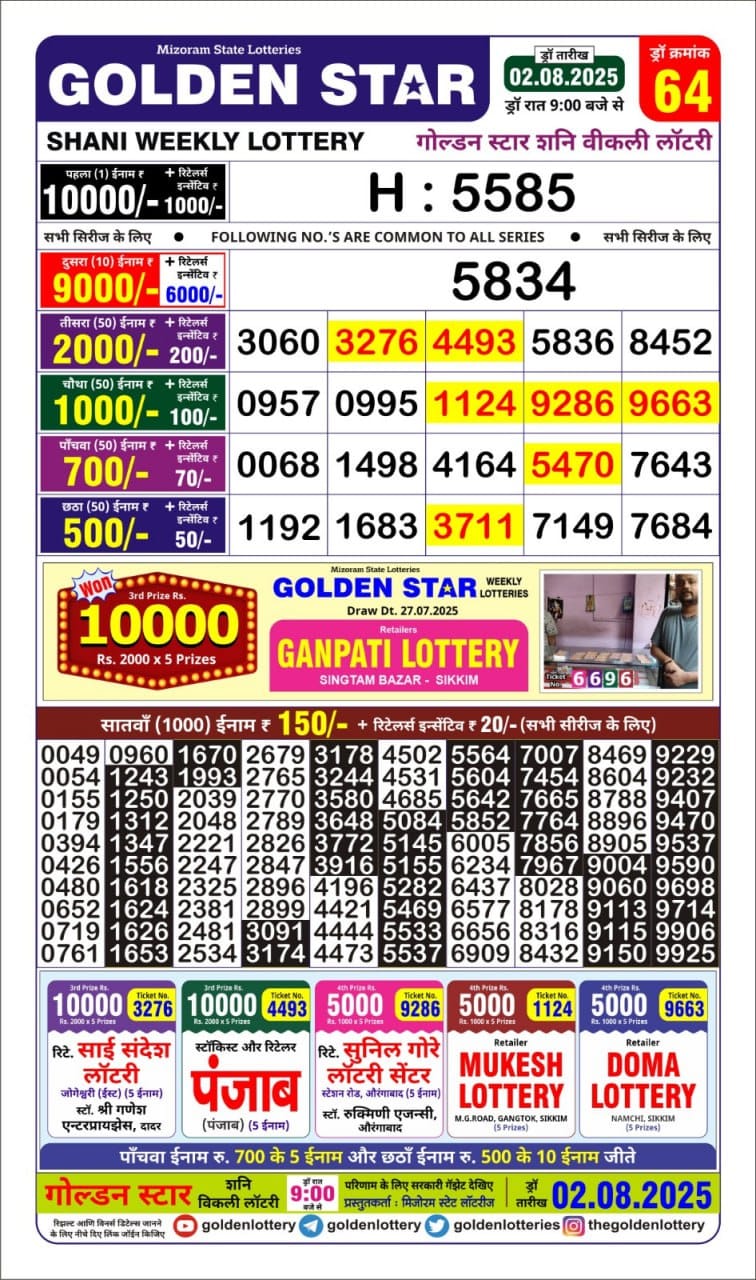 Golden Star Shani 9pm Weekly Lottery Result 02/08/2025 August 2, 2025 Leave a Comment on Golden Star Shani 9pm Weekly Lottery Result 02/08/2025 Related Results Golden Star Shani 9pm Weekly Lottery Result 13/12/2025 Golden Guru 9pm Weekly Lottery Result 11/12/2025 Golden 500 Gold Monthly Lottery Result 6:30 pm 10/12/2025 Golden Star 9 PM Weekly Lottery Result 09/12/2025