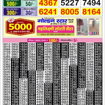 April 24, 2026  Leave a Comment on Golden Star Shukra 8:30PM Weekly Lottery Result Today 24/04/2026