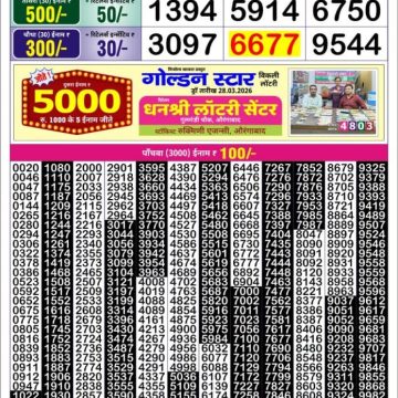 Golden Star Som 7PM Weekly Lottery Result Today 30/03/2026 March 30, 2026 Leave a Comment on Golden Star Som 7PM Weekly Lottery Result Today 30/03/2026 Related Results Golden Star Ravi 7pm Weekly Lottery Result Today 29/03/2026 Golden Star Shani 7pm Weekly Lottery Result Today 28/03/2026 Golden Star Shukra 7pm Weekly Lottery Result Today 27/03/2026 Golden Star Guru 7pm Weekly Lottery Result Today 26/03/2026