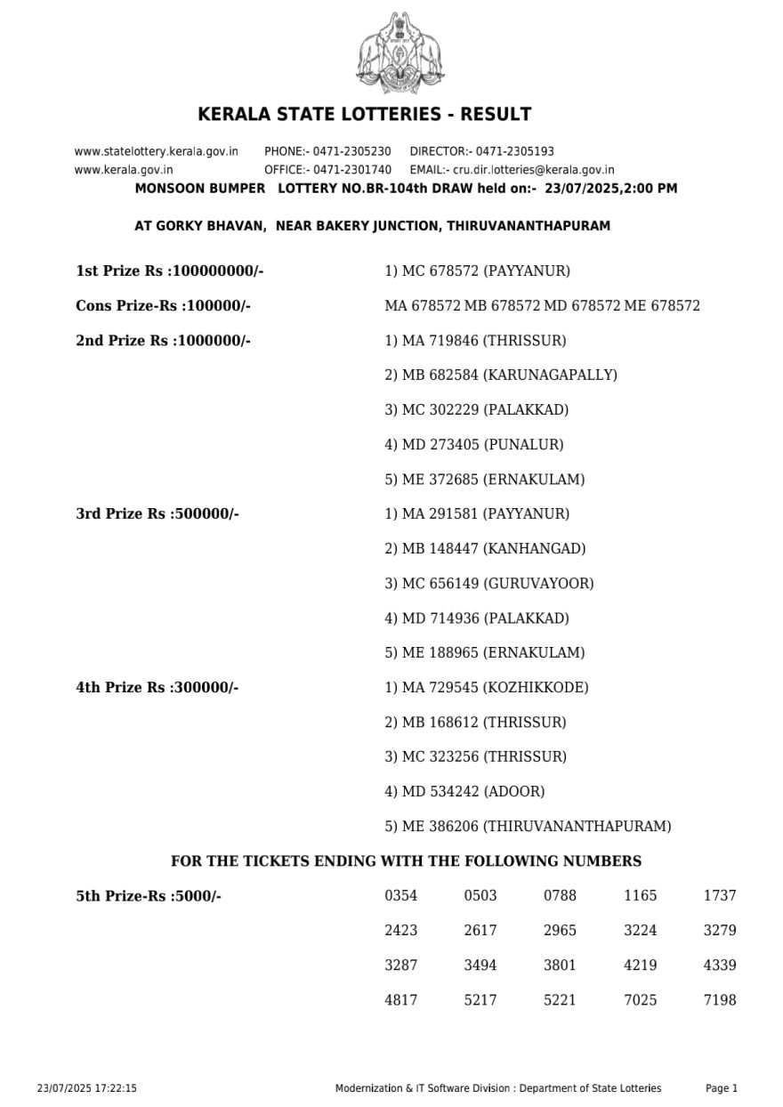 Location: All draws are held at Gorky Bhavan, Thiruvananthapuram, Kerala.