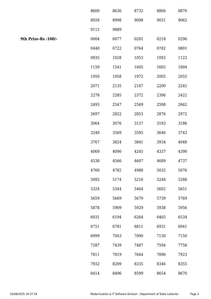 Kerala State Lottery SM 14 Result 03/08/2025
