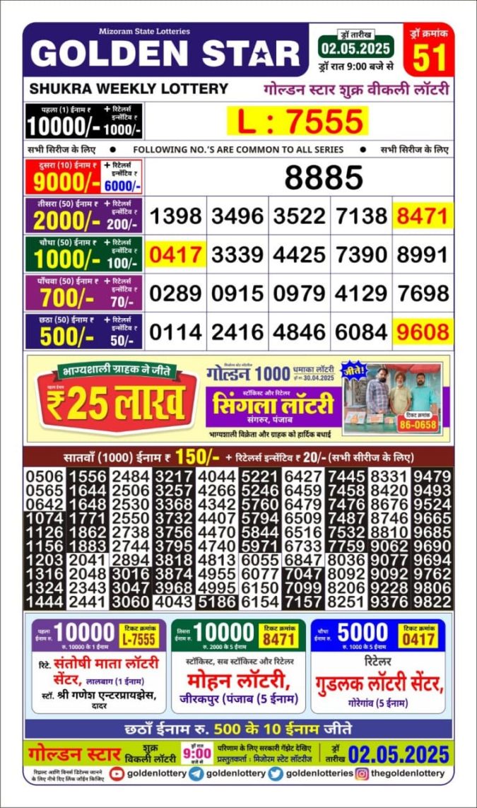 Golden Shukra  9pm weekly lottery result 2/05/2025