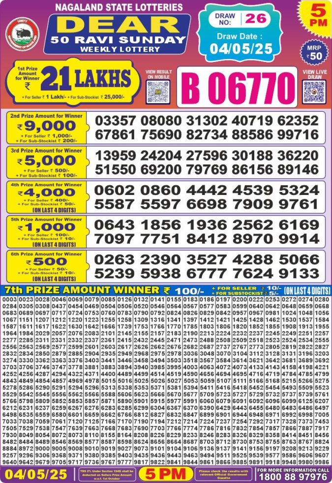 Dear 50 ravi 5pm sunday weekly lottery result 4/05/2025