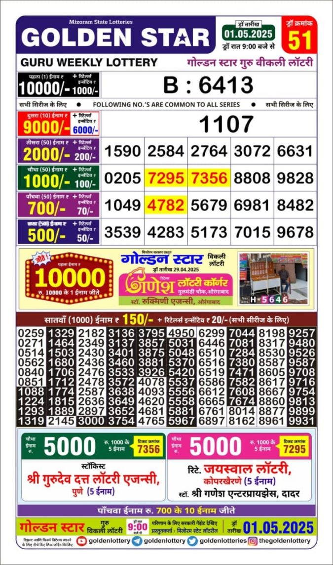 Golden Star Guru Weekly Lottery Result 1/05/2025