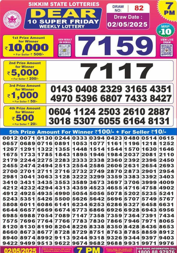 Dear 10 Super Friday weekly lottery 2/05/2025