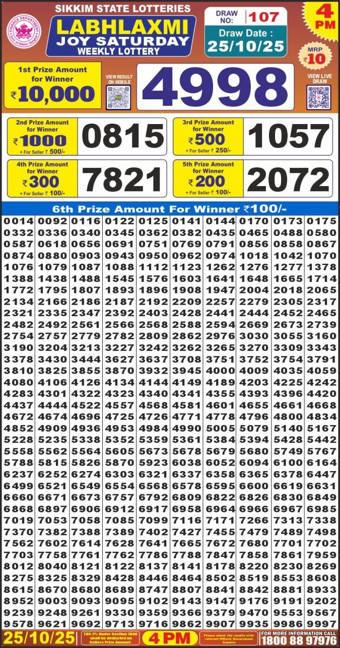 Karunya KR728 Result 25/10/2025 Kerala State Lottery Thiruvananthapuram: The Karunya KR728 Result for the draw held on…