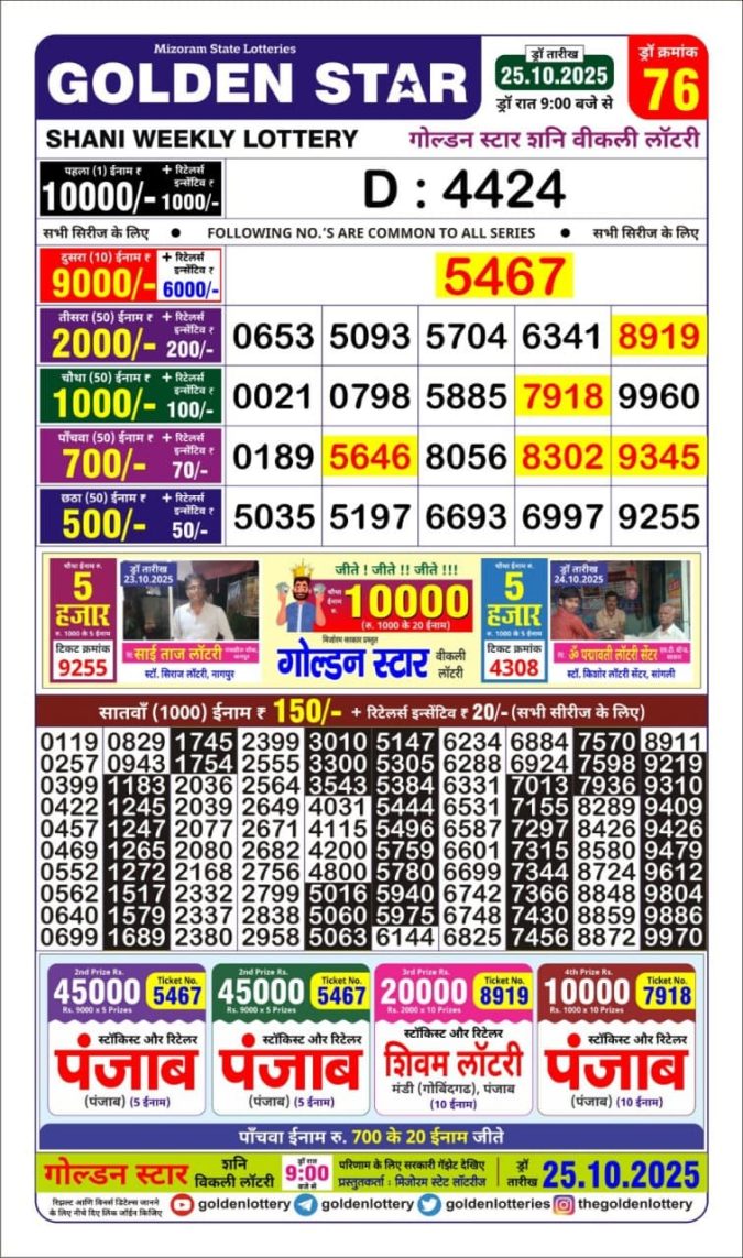Lottery Ticket Results Today – Lottery Sambad Today – Dear Lottery Result Today