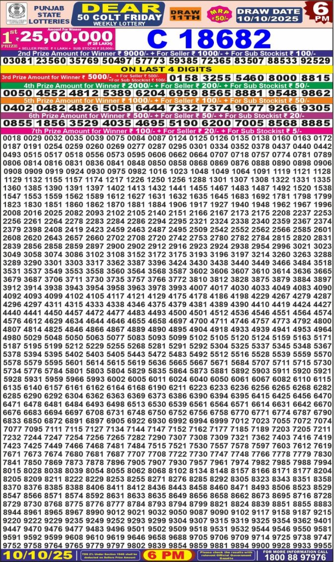 DEAR SUPREME THURSDAY WEEKLY LOTTERY – RESULT Draw Name: Dear Supreme Thursday Weekly Lottery Draw Date: 09/10/2025…
