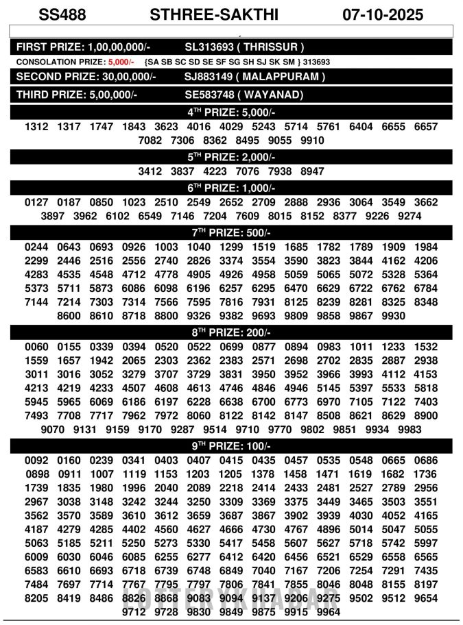 Live update: Sthree sakthi Lottery Result SS 488 07/10/2025