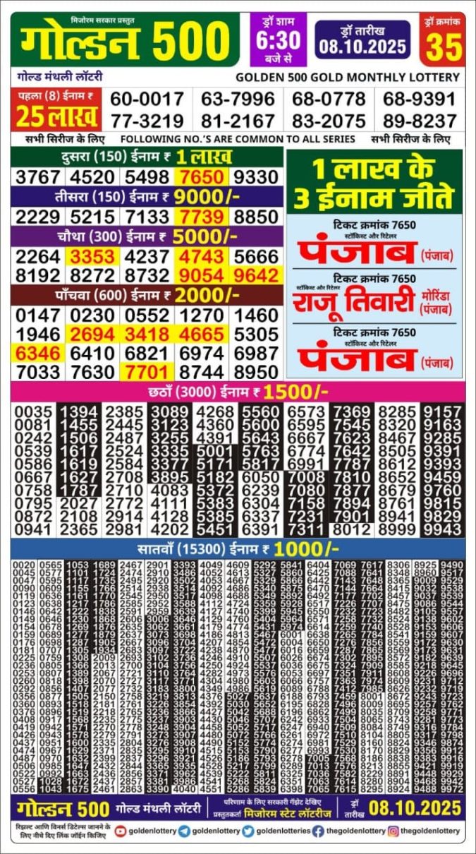 Golden 500 Gold Monthly Lottery Result 08/10/2025