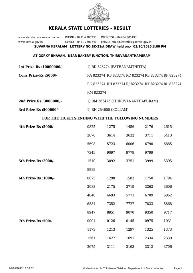 2025-12-06 Golden Star Shani 9pm Weekly Lottery Result 06/12/2025  2025-12-06 Rajshree 50 Shani Weekly Lottery Result 7.30pm 06/12/2025  2025-12-06 Rajshree Saturday 8pm Weekly Lottery Result 06/12/2025  2025-12-06 Dear Lucky 8pm Saturday Weekly Lottery Result 06/12/2025  2025-12-06 Punjab State Dear 50 6pm Saturday Weekly Lottery Result 06/12/2025  2025-12-06 Dear Elite 6pm Saturday Weekly Lottery Result 06/12/2025  2025-12-06 Rajshree 10 Evening Shani 5.40pm Weekly Lottery Result 06/12/2025  2025-12-06 Rajshree Orchid 4pm Weekly Lottery Result 06/12/2025  2025-12-06 Labh Laxmi Joy 4pm Saturday Weekly Lottery Result 06/12/2025  2025-12-06 Rajshree Shani 1pm Weekly Lottery Result 06/12/2025  2025-12-06 Dear Vision 1pm Saturday Weekly Lottery Result 06/12/2025  2025-12-05 Rajshree Night  Weekly Lottery Result 9pm 05/12/2025  2025-12-05 Suvarna Keralam SK-30 Result 05/12/2025 Kerala State Lottery  2025-12-05 Golden Shukra 9pm Weekly Lottery Result 05/12/2025  2025-12-05 Rajshree Friday 8pm Weekly Lottery Result 05/12/2025  2025-12-05 Rajshree 50 Shukra Weekly Lottery Result 7.30pm 05/12/2025