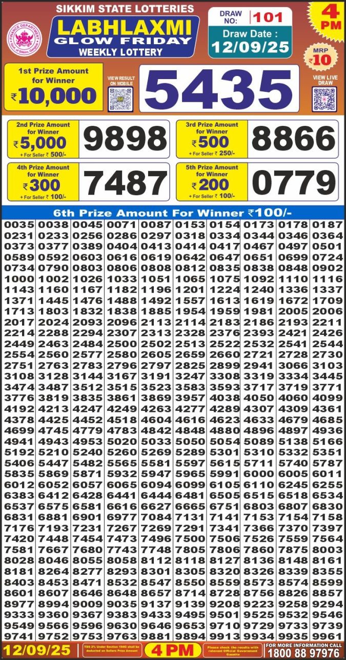 Labh Laxmi Glow Friday Weekly Lottery Result 4pm 12/09/2025