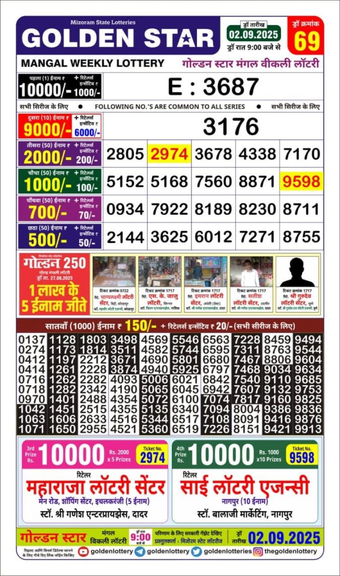 Golden Star 9 PM Weekly Lottery Result 02/09/2025