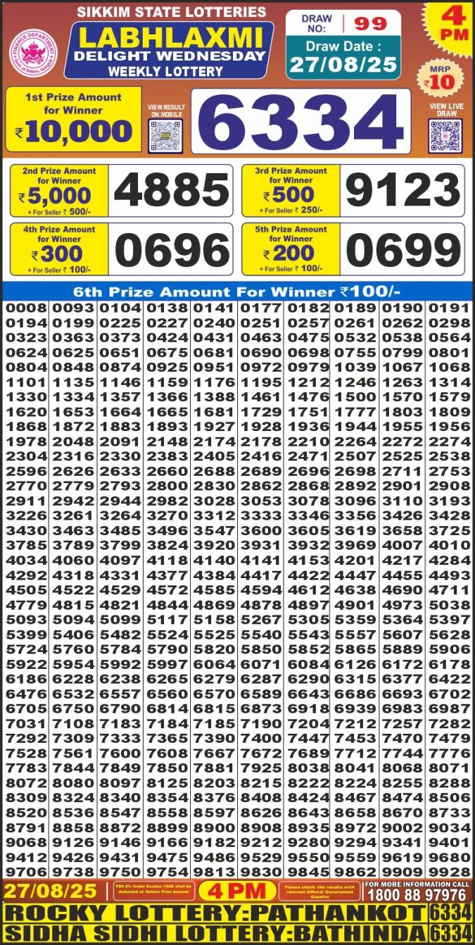Labh Laxmi Delight 4pm Wednesdday Weekly Lottery Result 27/08/2025
