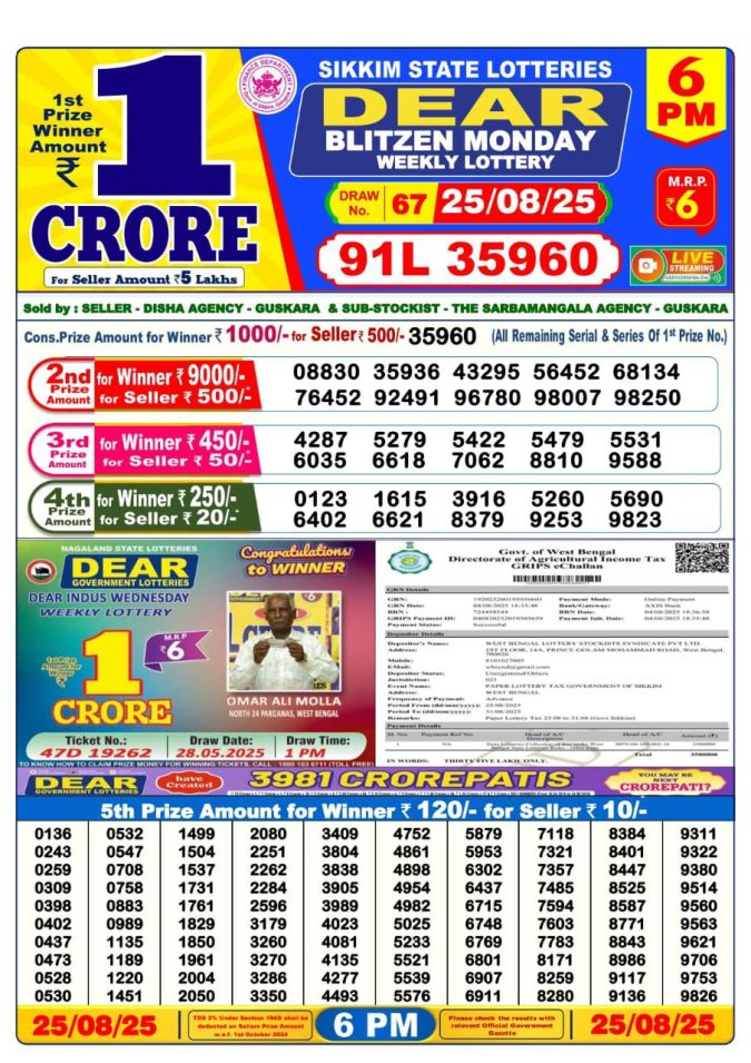 Dear Blitzen 6pm Monday Weekly Lottery Result 25/08/2025