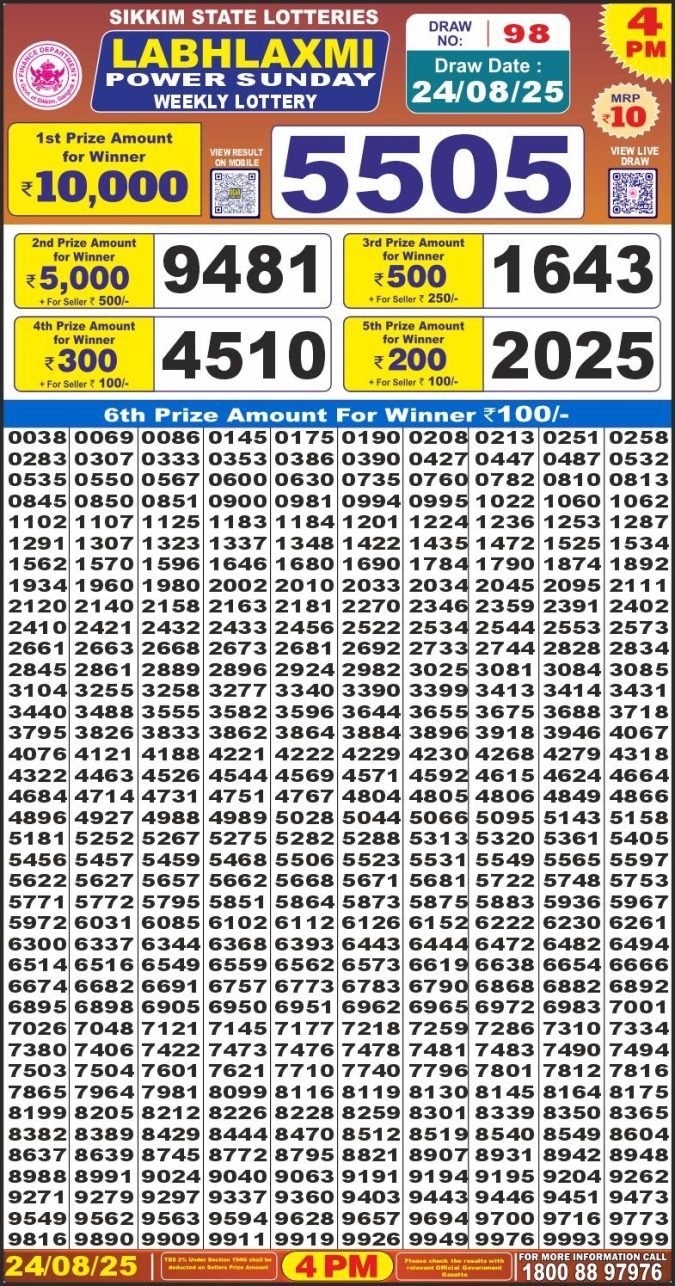 Labh Laxmi Power 4pm Sunday Weekly Lottery Result 24/08/2025