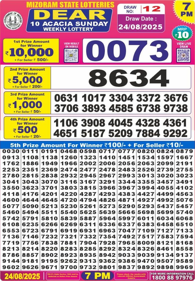Dear 10 Acacia 7pm Sunday Weekly Lottery Result 24/08/2025